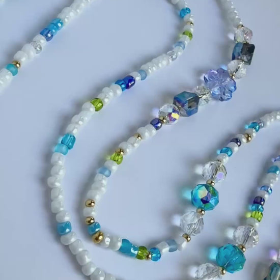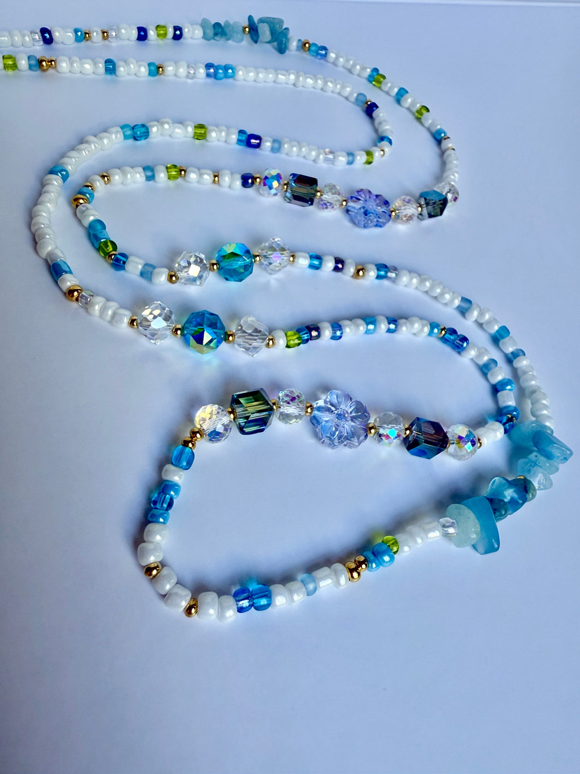 A dreamy blend of ocean blues, crystal shimmer, and delicate flower beads—Blue Bloom Tide is calm, feminine, and full of grace. Adorn your waist with the peaceful energy of water and the beauty of a bloom.